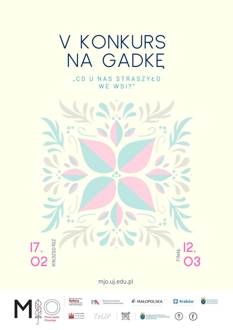 Serdecznie zapraszamy do udziału w V Konkursie na gadkę, wydarzeniu będącym częścią Miesiąca Języka Ojczystego, organizowanym przez Koło Naukowe Językoznawców Studentów UJ im. Mieczysława Karasia (Wydział Polonistyki Uniwersytetu Jagiellońskiego).