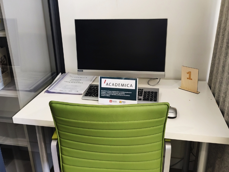 Czytelnia stanowi integralną część Wypożyczalni Głównej. Posiada 4 stanowiska do korzystania z księgozbioru lub pracy cichej, 3 stanowiska komputerowe z bezpłatnym dostępem do Internetu oraz 4 wygodne fotele umożliwiające korzystanie z dostępnego w niej regału z bieżącymi czasopismami. W czytelni można korzystać z komputera, który ma dostęp do cyfrowej wypożyczalni międzybibliotecznej ACADEMICA. Na terenie całego budynku dostępna jest również szyfrowana, bezpłatna sieć Wi-Fi.