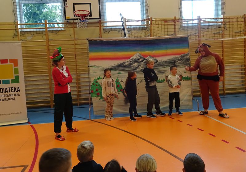 3 grudnia Szkoła Podstawowa w Golkowicach gościła Teatr Edukacji i Profilaktyki "MASKA" ze świątecznym spektaklem „Zimowa afera! Ktoś porwał renifera”.