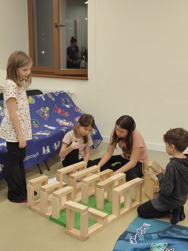 Podczas warsztatów dzieci poznawały również, czym jest firma i po co się ją zakłada, skąd biorą się pomysły na biznes, kim jest klient oraz czym różni się produkt od usługi. Rozmawialiśmy o pieniądzach w firmie, reklamie, sprzedaży i współpracy w zespole. Na zakończenie dzieciaki w grupach tworzyły własne firmy – wymyślały nazwę, ofertę, ceny i budowały swoje przedsiębiorstwa przy użyciu klocków.