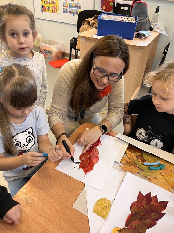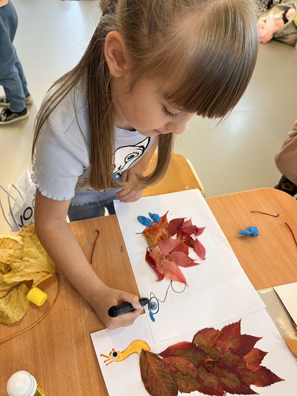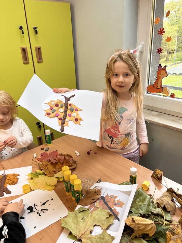 Przedszkolaki wykonały piękne zwierzątka z jesiennych liści, wykorzystując plastelinę oraz inne dary jesiennej natury. Z wielkim zaangażowaniem i radością tworzyły swoje prace zamieniając zwykłe liście w motyle, ślimaki, liski, jeże, sówki i wiewiórki. Podczas zajęć dzieci rozwijały swoją kreatywność, wyobraźnię i zdolności manualne, tworząc wyjątkowe kolorowe prace inspirowane przyrodą. Zajęcia plastyczne w jesiennym klimacie pozwoliły najmłodszym lepiej poznać przyrodę i docenić jej bogactwo. Zajęcia przebiegły w miłej i twórczej atmosferze.