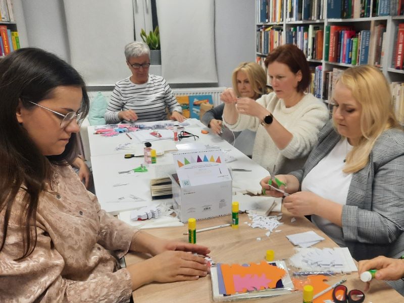 Uczestniczki uczyły się, jak nadać niepotrzebnym materiałom drugie życie, tworząc unikatowe, ręcznie robione dekoracje do swoich domów. Spotkanie przebiegło w relaksującej i miłej atmosferze, oferując przestrzeń do kreatywności i wymiany doświadczeń.