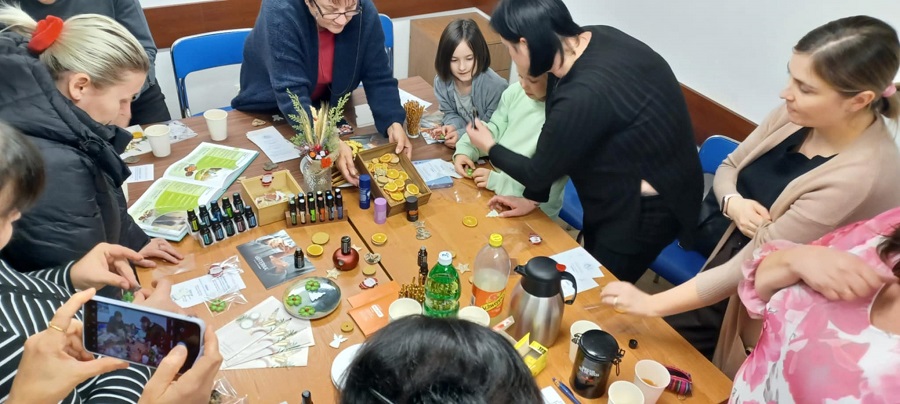W świat aromatów zabrały nas Panie Teresa i Kasia z Wenantia &Venantella. Opowiadały o swojej pasji zrodzonej z potrzeby dbania o siebie. Przecież nikt nie zadba za nas o nasze zdrowie. Mówiły o mocy natury ukrytej w kropli — o tym, jak olejki mogą wspierać zdrowie, odporność i dobre samopoczucie.