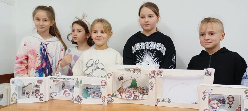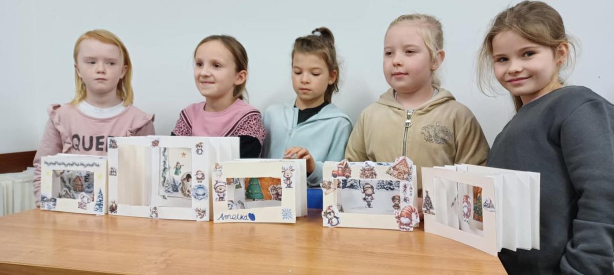 Uczniowie ze szkoły podstawowej przyszli na zajęcia przedświąteczne. Mówiliśmy o tradycjach bożonarodzeniowych. Poznaliśmy jak spędzają święta dzieci  w różnych krajach i kto przynosi prezenty. Dowiedzieliśmy się również o tradycji ubierania snopków zboża i w ogóle co to jest snopek zboża, bo jest to dla dzieci nieznana rzecz. Wiemy już skąd powiedzenie :”spotkać się pod choinką”.