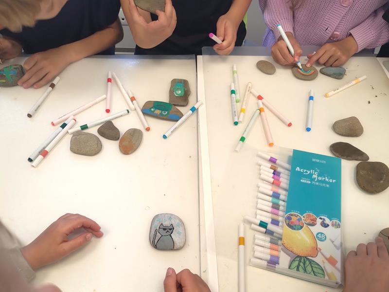 Na zajęciach wspominaliśmy wakacyjne przygody. Mówiliśmy o akcji #kamyczki. Dzieci pisakami akrylowymi stworzyły własne „kolorowe kamyczki”. Kto wie, może znajdziecie któryś z „kolorowych kamyczków” np. na spacerze.