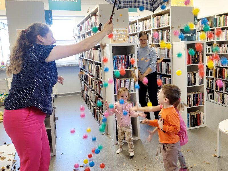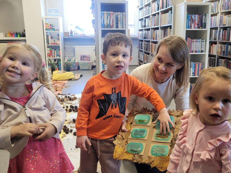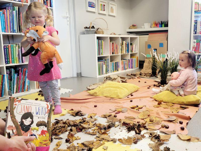 W bibliotece wszystko może się zdarzyć! Przekonały się o tym dzieci uczestniczące w kolejnych zajęciach „Czytadełki”. Maluchy były zaskoczone, że w naszej bibliotece powstała leśna ścieżka i polana pełna liści, kasztanów a nawet grzybów. Inspiracją takiej aranżacji była książka „Jano i Wito w lesie”.