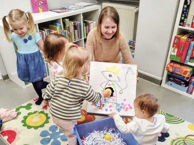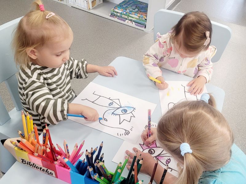 Nie zabrakło także czasu na ruch, dzieci nakarmiły pusty brzuch swojego „nowego przyjaciela”. Każdy z maluchów mógł także pokolorować Turlututu i zabrać drugą kolorowankę do domu. Później dzieci same kreowały własne zabawy, a mamy miały czas na rozmowę i wymianę doświadczeń o rodzicielstwie.