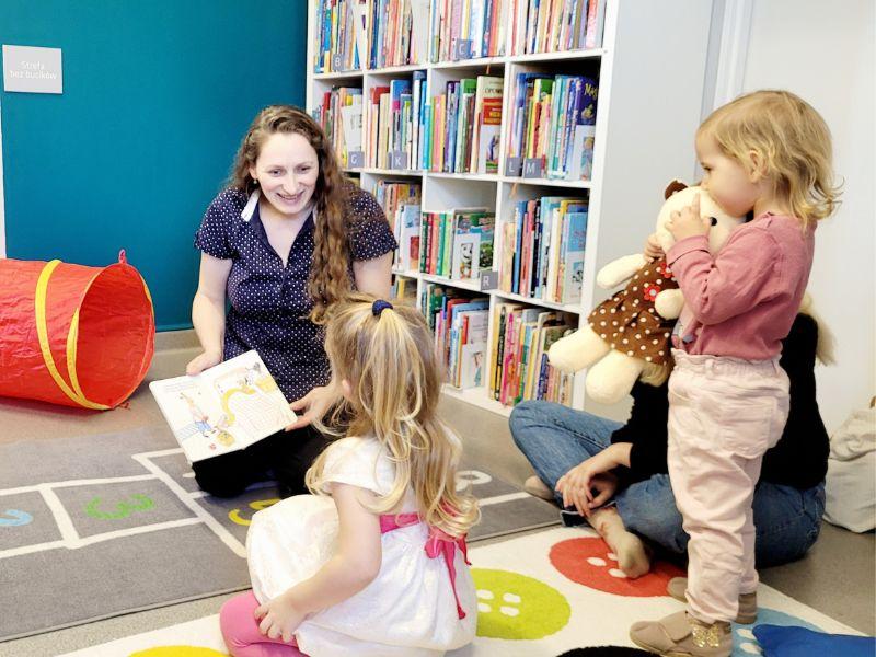 Kolejne spotkanie maluszków z książką było związane z ulubioną zabawą dzieci czyli w chowanie się. Do tej aktywności zachęcił nas bohater książki „Dzień dobry Karolku”. Mały króliczek postanowił schować się mamie, a przy tym doskonale się bawić. Razem z nim wesołe humory miały maluszki, które przyszły na Czytadełki w czwartek 26 lutego.