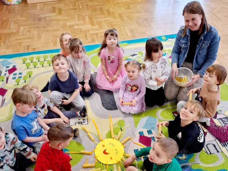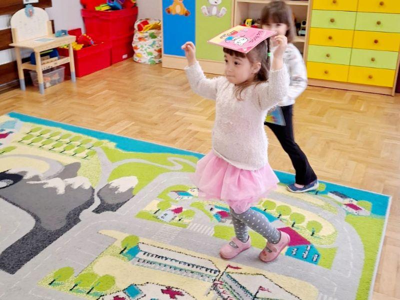 W ramach gimnastyki maluszki oraz Pani wychowawczyni pokonali z ogromną precyzją slalom z książką na głowie. Deszczową pogodę przegoniliśmy wraz ze słońcem, które „poprosiło” dzieci o ozdobienie ich makaronowymi koralikami. Na pamiątkę grupa przedszkolna otrzymała specjalny dyplom oraz zadanie do wykonania.