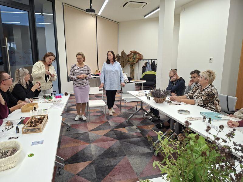Nie zabrakło również praktycznych wskazówek dotyczących bezpiecznego stosowania olejków oraz krótkich demonstracji zapachowych mieszanek. Spotkanie upłynęło w inspirującej atmosferze – każdy miały okazję zadać pytania i wymienić się doświadczeniami. Na zakończenie każdy z nas stworzył i zabrał do domu swój własny, pachnący kawałek relaksu.