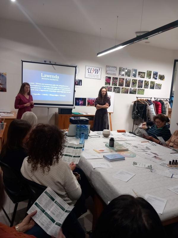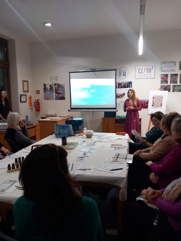 Podczas warsztatów uczestnicy poznali tajniki działania olejków eterycznych oraz ich wpływ na nasz mózg, emocje i samopoczucie. Omówiono, które aromaty wspierają proces zasypiania i poprawiają jakość snu, a także te, które pomagają redukować stres, napięcie i lęk. Uczestnicy otrzymali wiele praktycznych wskazówek dotyczących bezpiecznego i skutecznego włączania aromaterapii do codziennego życia. Warsztaty poprowadziła Joanna Dziedzic — kosmetolog, mama trójki dzieci i pasjonatka naturalnych metod dbania o zdrowie, która od lat zgłębia tematykę aromaterapii i dzieli się swoją wiedzą poprzez blog „Zapachy Życia”. Jej ogromne doświadczenie oraz praktyczne podejście sprawiły, że spotkanie przebiegło w atmosferze inspiracji i otwartości. Gościem specjalnym wydarzenia była Monika Śleboda — magister farmacji, która opowiedziała o kluczowej roli snu w zachowaniu zdrowia oraz wyjaśniła, w jaki sposób odpowiednio dobrane zapachy mogą wspierać proces regeneracji organizmu. Warsztaty były wartościowym i pełnym pozytywnej energii spotkaniem. Dostarczyły uczestnikom nowej wiedzy oraz narzędzi do zadbania o siebie w naturalny sposób.
